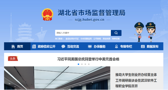 1.登錄湖北省市場監(jiān)督管理局的官方網(wǎng)址:http://scjg.hubei.gov.cn/